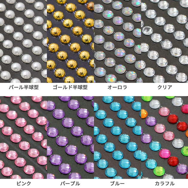 | ■商品番号 | 約3mm(約20〜30列) 【4838-31】パール/ 【4838-32】ゴールド半球型 【4838-33】オーロラ 【4838-34】クリア 【4838-35】ピンク 【4838-36】パープル 【4838-37】ブルー 【4838-38】カラフル 約4mm(約22〜23列) 【4838-41】パール 【4838-42】ゴールド半球型 【4838-43】オーロラ 【4838-44】クリア 【4838-45】ピンク 【4838-46】パープル 【4838-47】ブルー 【4838-48】カラフル |