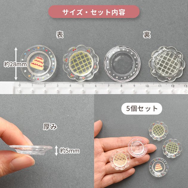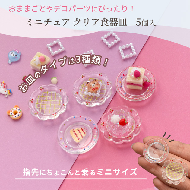 ミニ 食器 お皿 クリア アソートセット ごっこあそび 子ども シール作り シール交換 デコ パーツ 花 平皿 カフェ サンプル フェイクスイーツ チャーム レジン レジン液