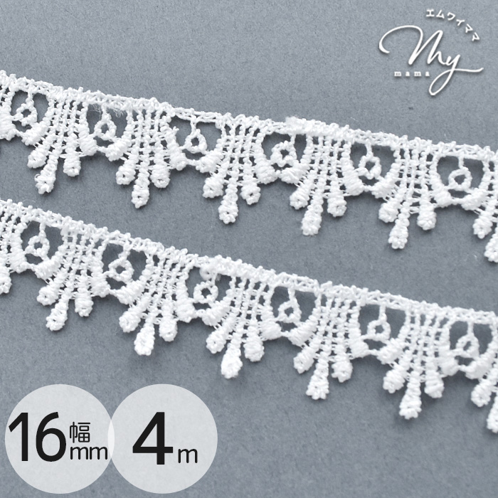 ケミカルレース 約16mm幅 約4m 白 細 リボン お洒落 しずくモチーフ ■ 花 王冠 幅細 クラシカル ブレード アンティーク レトロ 手芸 ■