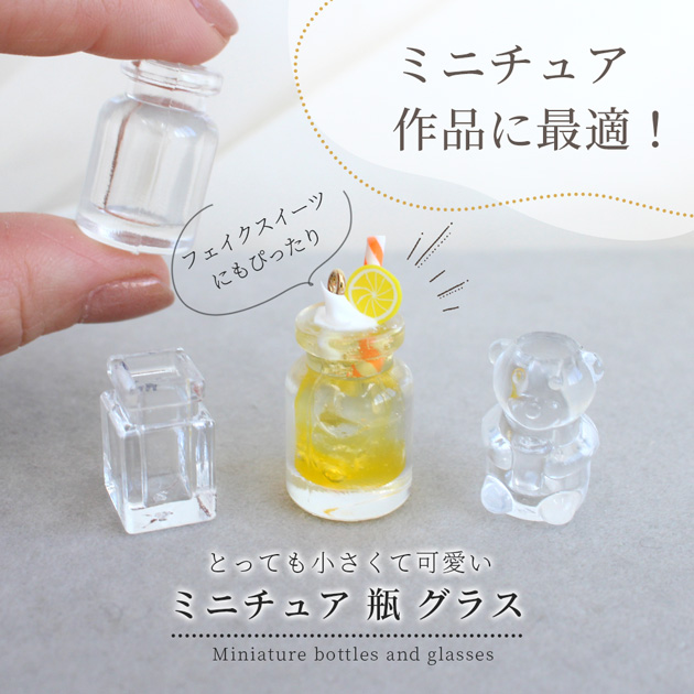 ガラスのような透明感のミニチュア瓶・グラスです。
