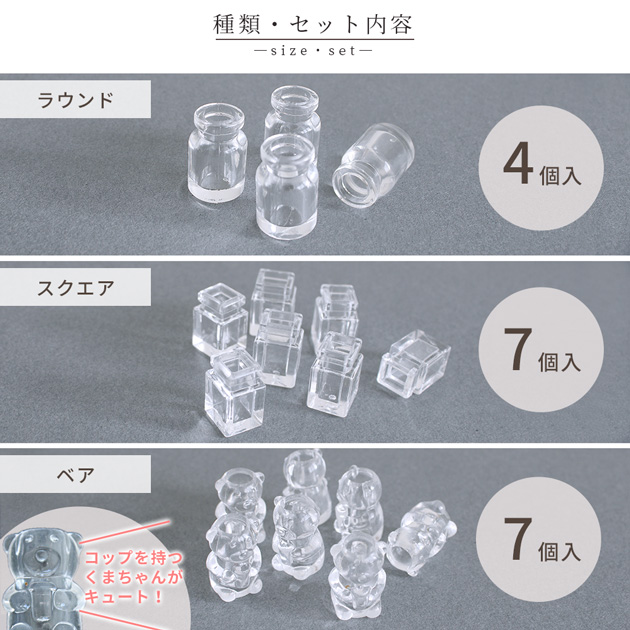 | ■内容量 | 【7059-1】ラウンド 4個 【7059-2】スクエア、 【7059-3】ベア 各7個 |