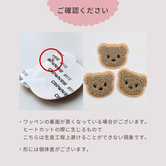 | ■ご注意 | ・一度付けるとやり直すことが出来ません。 ・裏面に若干汚れなどがある場合がございます。 ※茶色くなっている部分は生産工程上必要な「ヒートカット」の際に起こる現象です。こちらは避けることができないものとなります。 ・形には個体差がございます。 ・生産ロットによりお色味が若干異なる場合がございます。 ・画像では100%同じお色を表現することは出来ません。実際のお色味と若干異なる場合がございます。 ご注意に記載しました理由での返品、交換は承ることは出来ません。 予め、ご了承の上お買い求めお願い申し上げます。 |