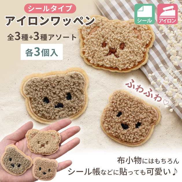 | お気に入りシリーズ ぽちゃっとアニマル ミニワッペン 2枚入 | リボン サクランボ プチワッペン 1枚入 | アイロン接着ワッペン 3枚セット 全12デザイン |
