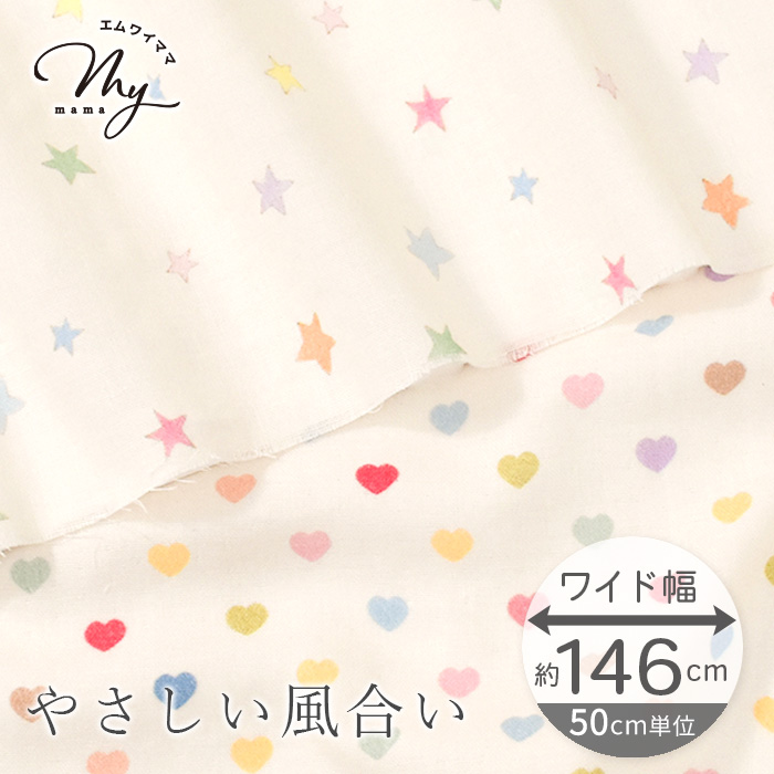 | ダブルガーゼ 生地 ドリームメイツ | ダブルガーゼ 生地 カラフルスター&ハート | 1M単位 国産 ダブルガーゼ 生地 無地 全20色 |