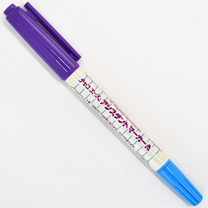 | ■ご注意 | ・自然に消える早さは、筆圧、温度、湿度、インク量、書かれる素材により異なります。消えるまでの時間は目安であり、確定しお約束するものではない事をご了承下さい。 ・布地に薬品処理が施されている場合、薬品と反応すると印が早く消えることや、変色、定着する等のおそれがあります。 ・すぐに消したい時、紫は専用のイレーサー又は水をご使用下さい。青は水をご使用下さい。 ・印がついたまま重ねておいたり、袋等に入れた場合は、消えるまでに余分な時間がかかります。 ・アイロンをかける時は印が消えてからご使用下さい。 ・万一、インクが目に入ったり、誤って飲み込んでしまった場合は直ちに洗眼、うがいをし、痛みや違和感がある場合は医師の診断を受けて下さい。 ・ご使用後は必ずキャップをしめて下さい。 その他、パッケージの注意事項をご確認の上、ご利用ください。 |