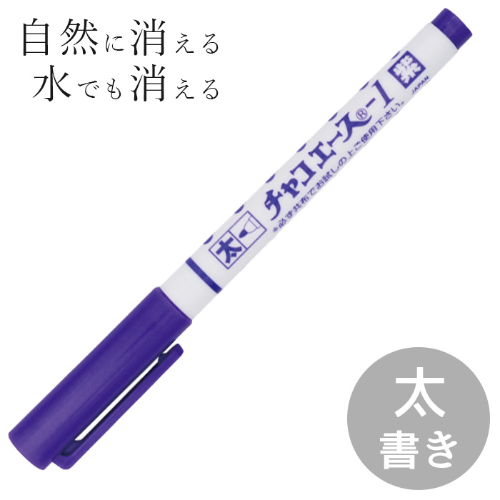 | ■ご注意 | ・自然に消える早さは、筆圧、温度、湿度、インク量、書かれる素材により異なります。 ・素材に施されている薬品や染料などと反応した場合、印が早く消えたり、変色、定着する場合があります。 ・消す時に専用のイレーサー又は水以外は使用しないで下さい。 ・印がついたまま重ねておいたり、袋等に入れた場合は、消えるまでの時間が長くなります。 ・アイロンは印が消えてからご使用下さい。 ・万一、インクが目に入ったり、誤って飲み込んでしまった場合は直ちに洗眼、うがいをし、痛みや違和感がある場合は医師の診断を受けて下さい。 ・ご使用後は必ずキャップをしめて下さい。 ・色、柄によっては見えにくい場合があります。 ・濃色布地にはホワイトAをご使用下さい。 その他、パッケージの注意事項をご確認の上、ご利用ください。 |