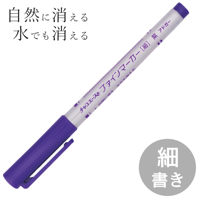 | ■ご注意 | ・自然に消える早さは、筆圧、温度、湿度、インク量、書かれる素材により異なります。 ・素材に施されている薬品や染料などと反応した場合、印が早く消えたり、変色、定着する場合があります。 ・消す時に専用のイレーサー又は水以外は使用しないで下さい。 ・印がついたまま重ねておいたり、袋等に入れた場合は、消えるまでの時間が長くなります。 ・アイロンは印が消えてからご使用下さい。 ・万一、インクが目に入ったり、誤って飲み込んでしまった場合は直ちに洗眼、うがいをし、痛みや違和感がある場合は医師の診断を受けて下さい。 ・ご使用後は必ずキャップをしめて下さい。 ・色、柄によっては見えにくい場合があります。 ・濃色布地にはホワイトAをご使用下さい。 その他、パッケージの注意事項をご確認の上、ご利用ください。 |