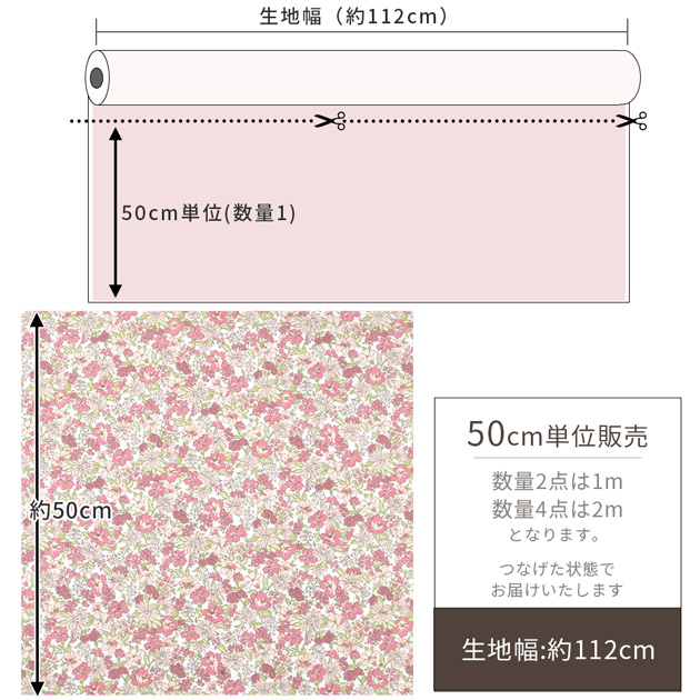 | ■販売単位 | 50cm単位の販売 1mご希望の方は数量2、2mご希望の方は数量4とご注文下さい。 |