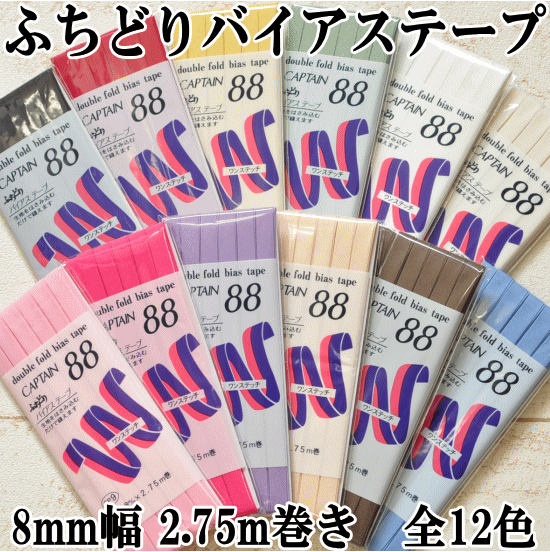 ふちどりバイアステープ8mm幅 2.75m巻き 全12色