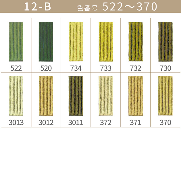 全500色 DMC 刺繍糸 25番 1カセ 8m 12-B 522〜370 12色 ■ 117 コットン ミサンガ ハンドメイド 手芸 手作り dmc25 ■