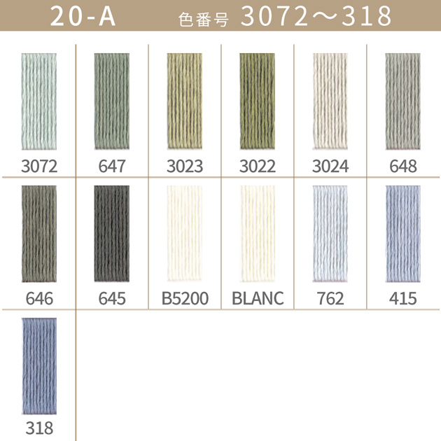 | カラー | 全500色 ※当ページでは、うち13色を販売 DMC 刺繍糸 25番 全カラーはこちら