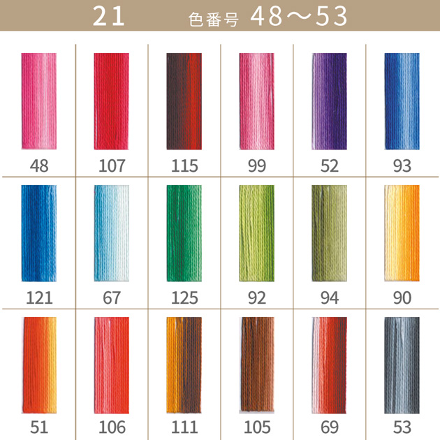 | カラー | 全500色 ※当ページでは、うち18色を販売 DMC 刺繍糸 25番 全カラーはこちら