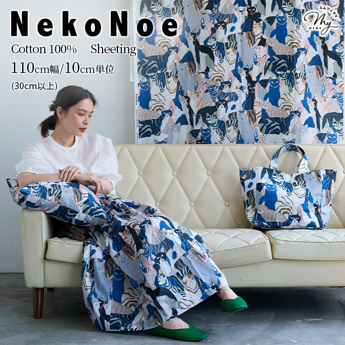 | Nekonoe 猫と植物 綿麻キャンバス生地 | Nekonoe 猫のいる生活 シーチング生地 | echino Nekonoe TWO CAT 綿麻キャンバス生地 |