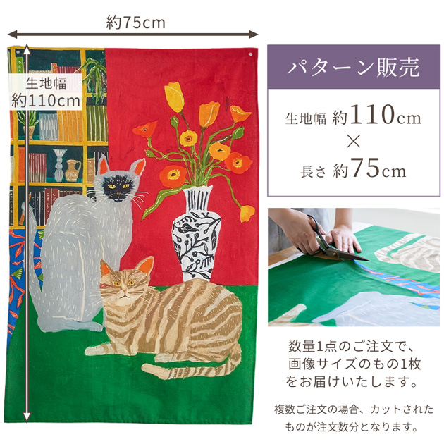 | ■販売単位 | 1パターン(約110×75cm)単位販売 1パターンご希望の方は数量1、2パターンご希望の方は数量2とご注文下さい。 複数ご注文の場合はカットされた物が注文数分お届けとなります。 |