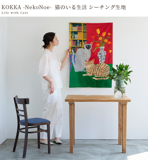 | Nekonoe 猫ぎっしり シーチング生地 | Nekonoe 猫と植物 綿麻キャンバス生地 | echino Nekonoe TWO CAT 綿麻キャンバス生地 |