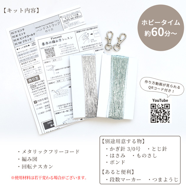 編み物 Metallic Free Cord Bright で作る ハンドストラップ キット 編み図 作り方動画 付き ■ パナミ ハンドメイド 手芸 手作り ■ baku