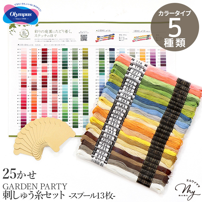 | GARDEN PARTY フランス刺しゅう糸セット 2m×10色 | GARDEN PARTY 刺しゅう糸セット 50かせ | GARDEN PARTY 刺しゅう糸セット 100かせ |