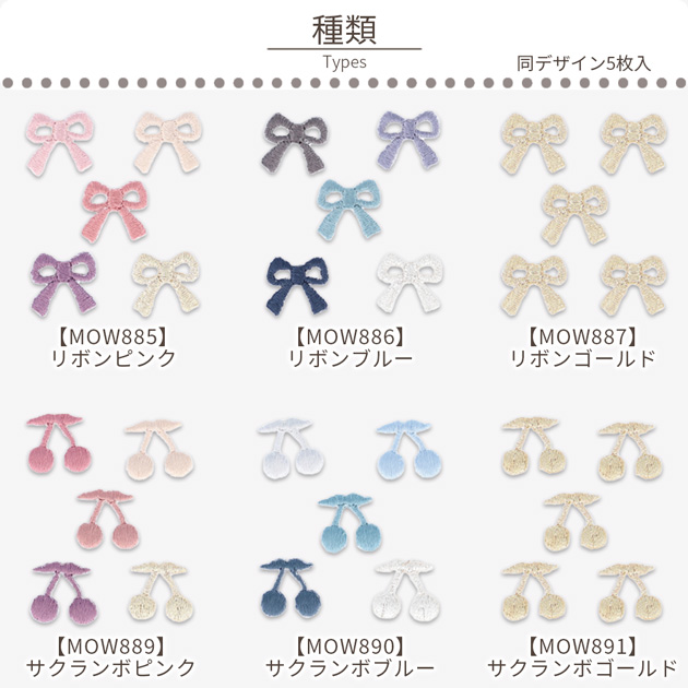 | ■商品番号 | 【MOW885】リボンピンク 【MOW886】リボンブルー 【MOW887】リボンゴールド 【MOW889】サクランボピンク 【MOW890】サクランボブルー 【MOW891】サクランボゴールド |