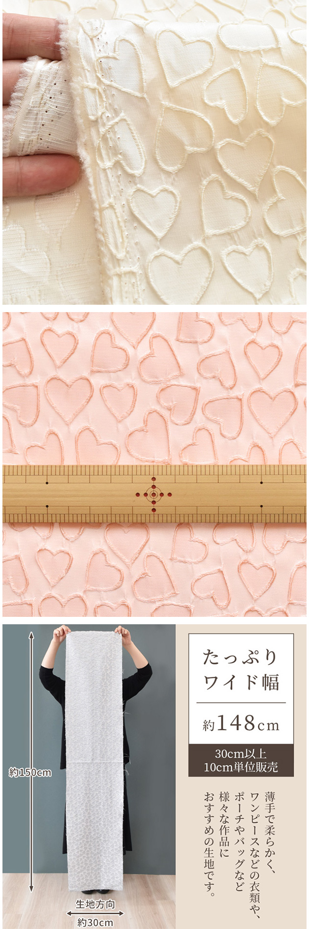 | ■サイズ | 約150cm幅 ※生産ロット・お色によって生地幅が若干異なる場合がございます。 |