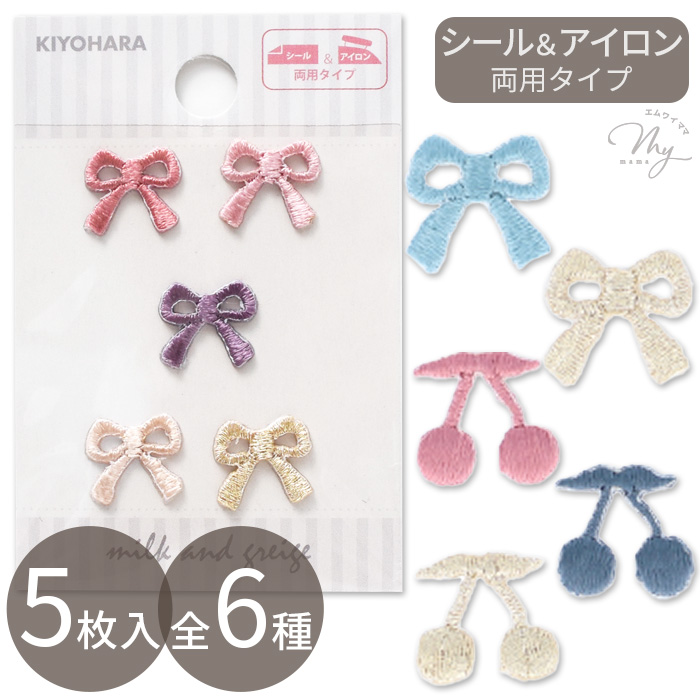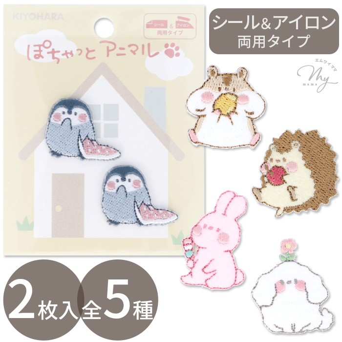 | ぽちゃっとアニマル ミニワッペン シール&アイロン接着 | リボン サクランボ プチワッペン シール&アイロン接着 |