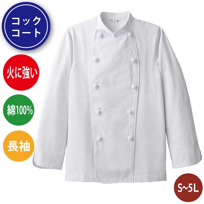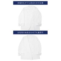飲食店や食品製造・給食の現場で主に着用されるベーシックなプロ仕様のコックコート長袖です。