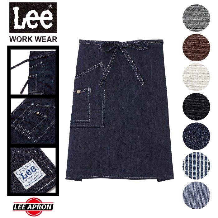 Lee 腰下 ミドル丈 エプロン デニム ヒッコリー レディース メンズ カフェ ワーク 作業着 業務用 飲食店 店舗 ユニフォーム LCK79004