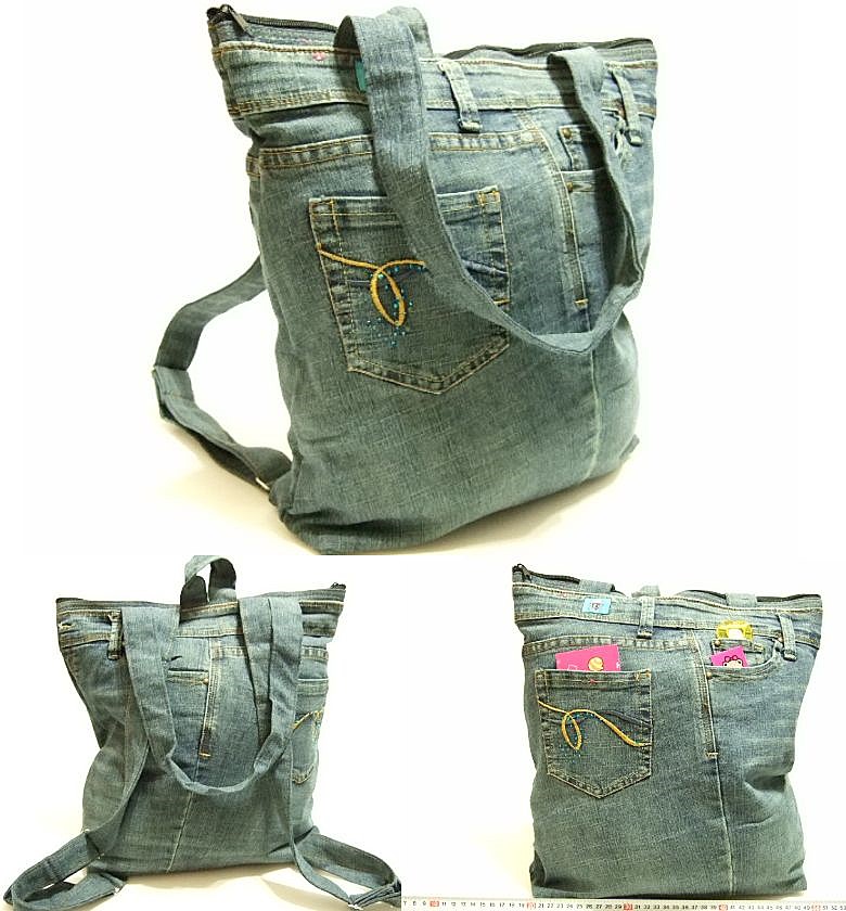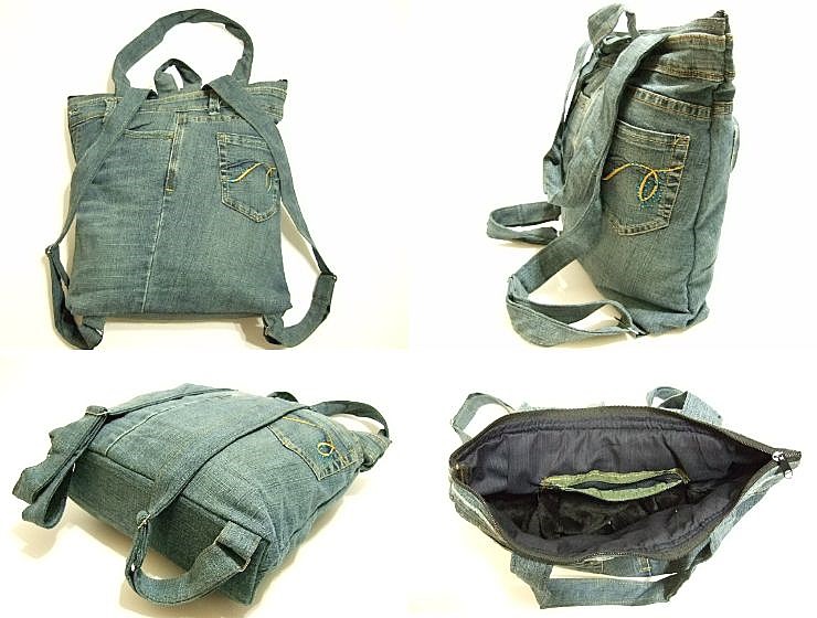 | 商品名 | 横浜最新 魅惑のデニム リュック&トート ツーウェイバッグ紺♪リメイクオリジナルバッグ 横巾30〜37cm 縦38cm マチ8cm底板付 |