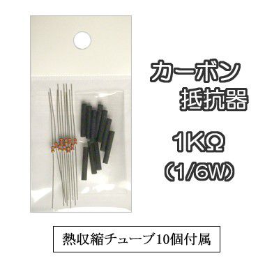 カーボン抵抗器 【1/6W 1KΩ】 10本入り (熱収縮チューブ10個付属)