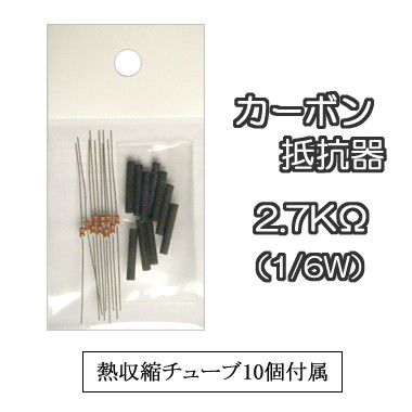 カーボン抵抗器 【1/6W 2.7KΩ】 10本入り (熱収縮チューブ10個付属)