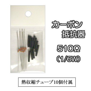 カーボン抵抗器 【1/6W 510Ω】 10本入り (熱収縮チューブ10個付属)