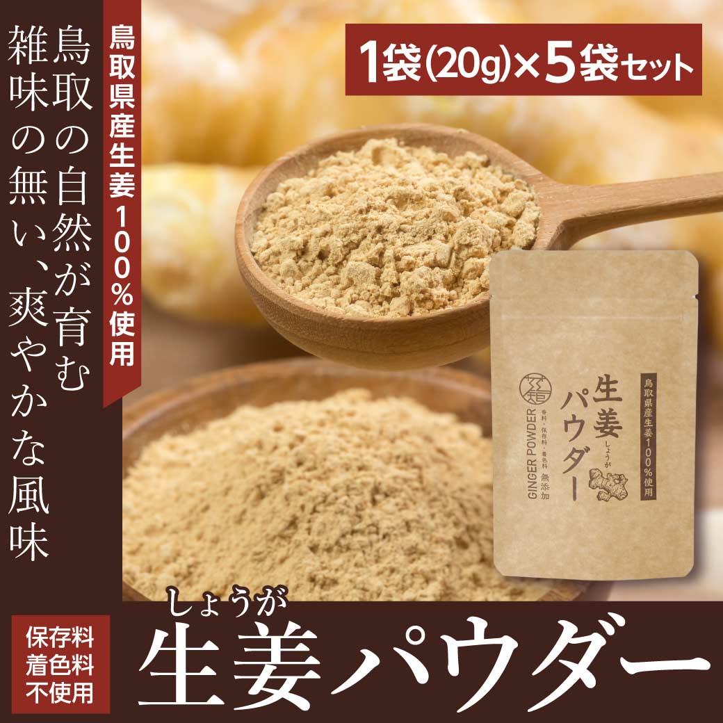 生姜 生姜パウダー 5袋セット ジンジャーパウダー 1袋(20g) 鳥取県産 国産 無添加 温活 ギフト