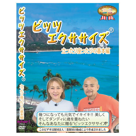 いつでも、どこでも、器具を使わず短時間でできる、効果抜群のビッツエクササイズ。寝たきりや生活習慣病の予防はもちろん幾つになっても元気でイキ イキ!!美しく、そしてダンディに歳を重ねたいあなたに贈るエクササイズです。トレーニング指導の経験豊富な医師と研究者が軽やかなハワイアンミュージッ クにのせて、あなたの健康づくりのお手伝いをします。さぁ、今日から一緒にビッツエクササイズ始めましょう!