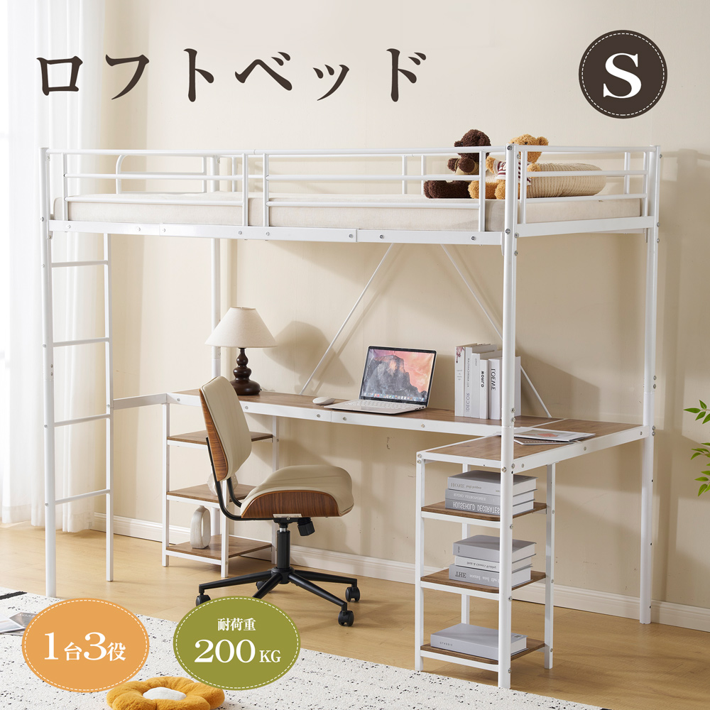 【全品10%OFF】ロフトベッド パイプベッド ベッド シングル デスク付き 収納棚 ハシゴ付き 左右入れ替え可能 子供ベッド 二段ベッド 子供部屋 スチール