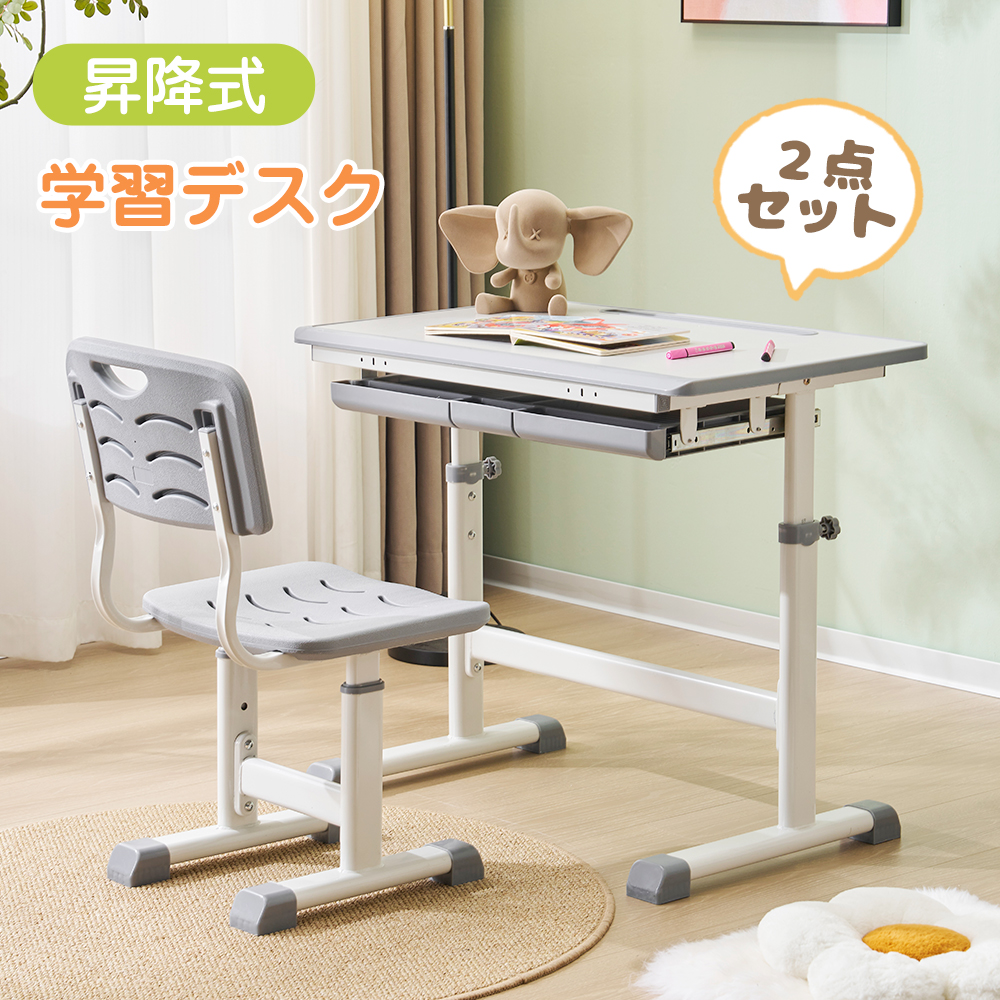 学習机2点セット 昇降式 3歳~18歳頃 学習机 デスク チェア付き 子供 高さ調整 昇降デスク 引き出し 机 学生 子供部屋 子供部屋 新生活