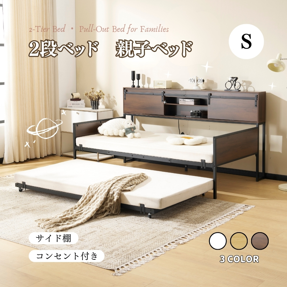 親子ベッド 二段ベッド 多段ベッド シングル ベッド コンセント付き 宮棚付き パイプベッド ホワイト ブラック シンプル 木 子供部屋 寮