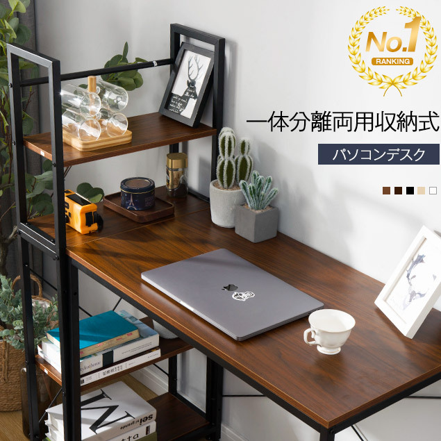 ラック付きワークデスク。ラックの左右入れ替えも可能。ご自宅で本格的なホームオフィス。雰囲気に合わせて選べる5色展開