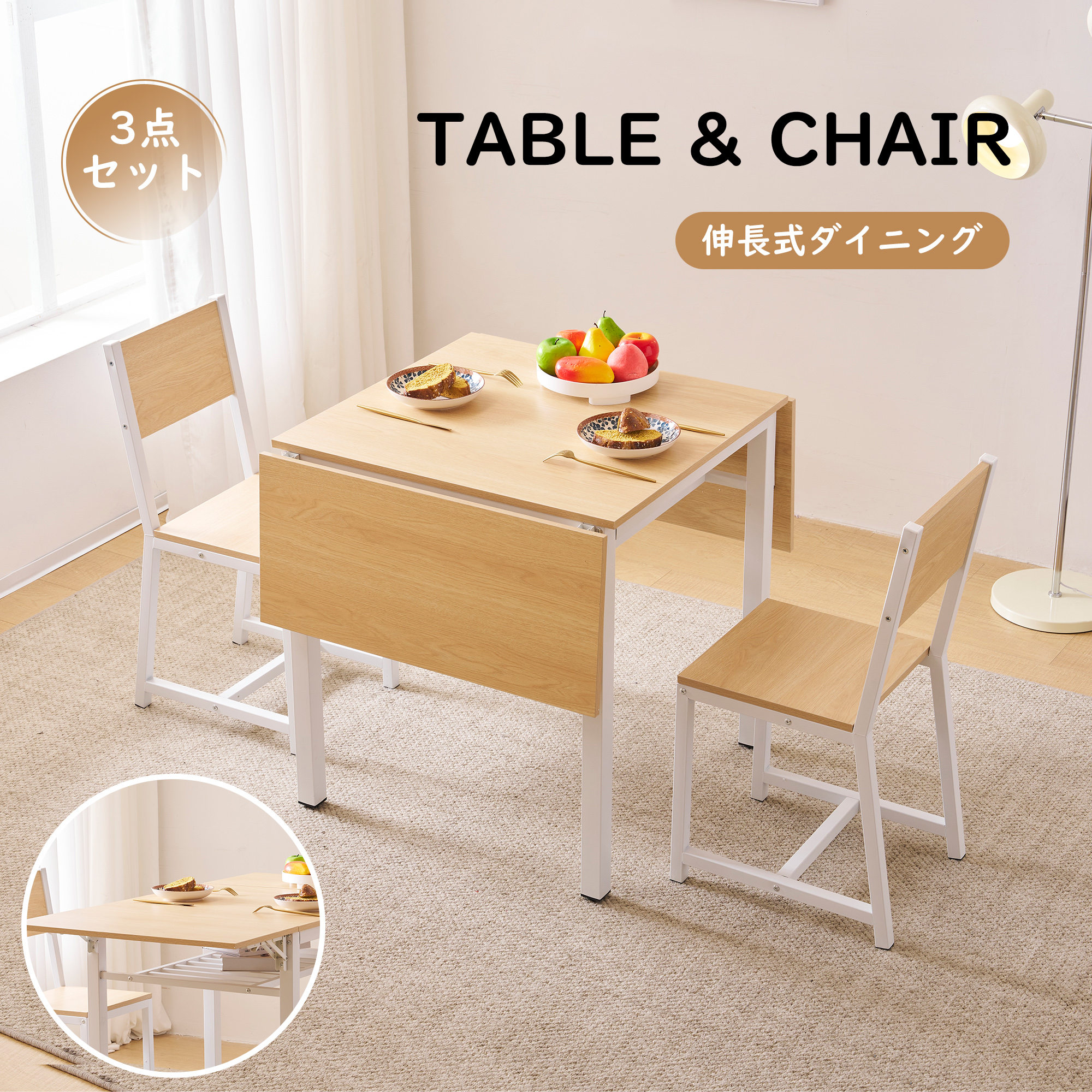 ダイニングテーブル 3点セット 2人用 食卓テーブル 2人掛け 2脚セット 木製 コンパクト 省スペース モダン 北欧 ダイニングセット シンプル