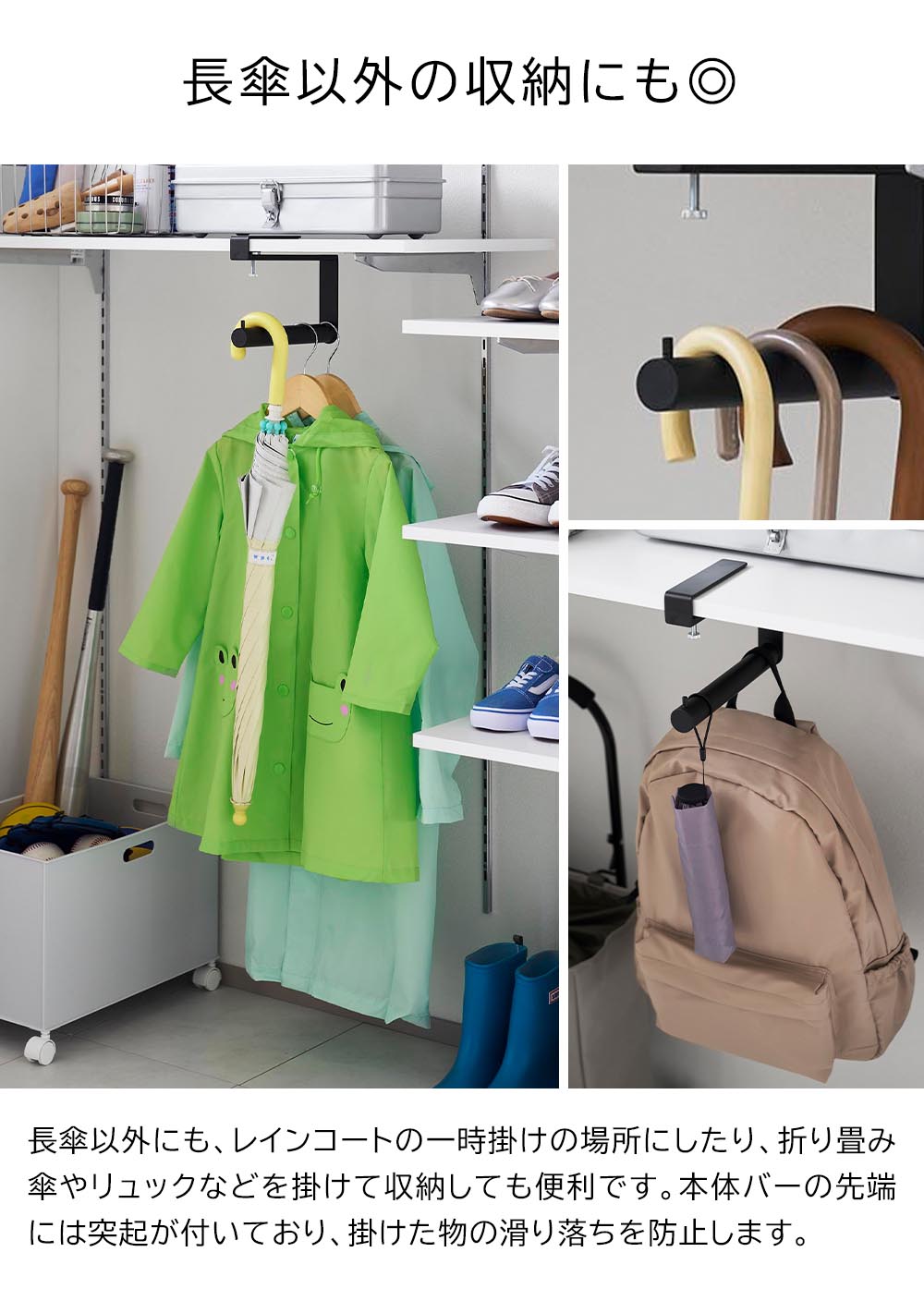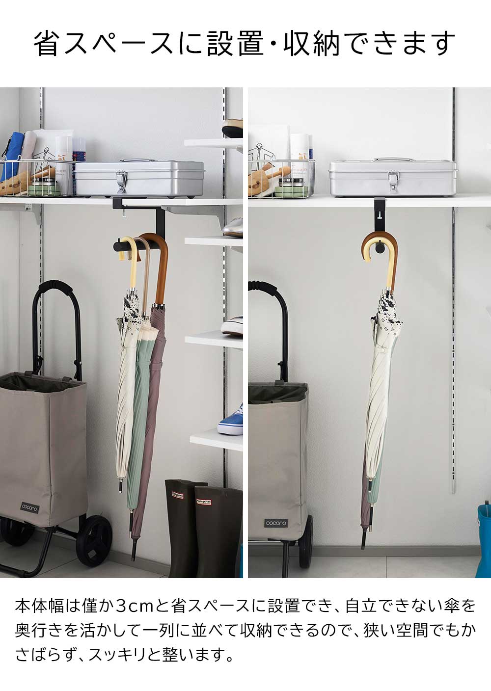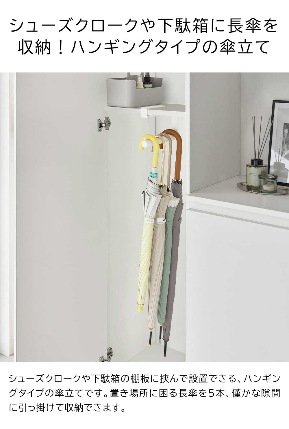 | 対応サイズ 収納数の目安 長傘5本 ※サイズや形状によっては設置・収納できない物もあります。 |