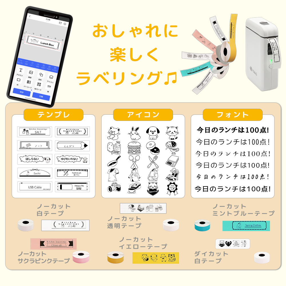 (扇風機付き)G&G サーマルプリンター GG-D110 感熱用紙付き(シール1個)スマホ対応 ミニ モバイルプリンター Bluetooth接続 ラベル/勉強/整理収納/宛名用