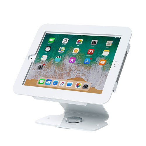 サイネージやiPadPOSレジ用スタンドとして最適なiPad用スタンド。向きを変えることができる回転盤付き。