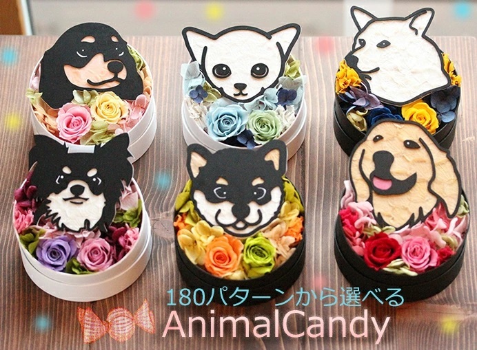 アニマルキャンディ プリザーブドフラワー オーダーメイド 犬好き 猫好き うさぎ好き 人気 ギフト 誕生日 花 ペット お供え プレゼント 父の日