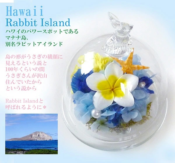 ラビットアイランド プリザーブドフラワー オーダーメイド 花 ギフトプルメリア うさぎ 誕生日 プレゼント 結婚祝い ハワイ ガラスケース 海 夏