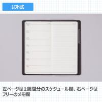 【週間予定欄:レフト式?】左ページは各日の記入欄、右ページは罫線のシンプルなレフト式で、自由に使えます。