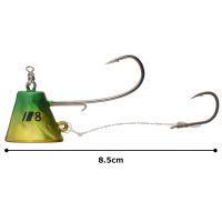 裾広がりのオリジナル形状により水 の抵抗を受け、ひらひらとゆっくり フォールすることで真鯛にアピー ル。しっかり真鯛に見せて喰わすの で、渋い状況に威力を発揮。