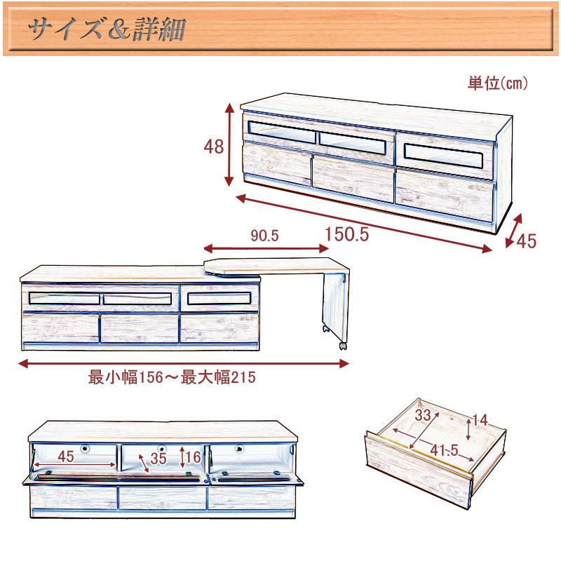 テレビ台 テレビボード TVボード おしゃれ 木製 伸縮 ローボード 北欧 ワンルーム 収納 収納用品 幅156cm 215cm 回転盤付き