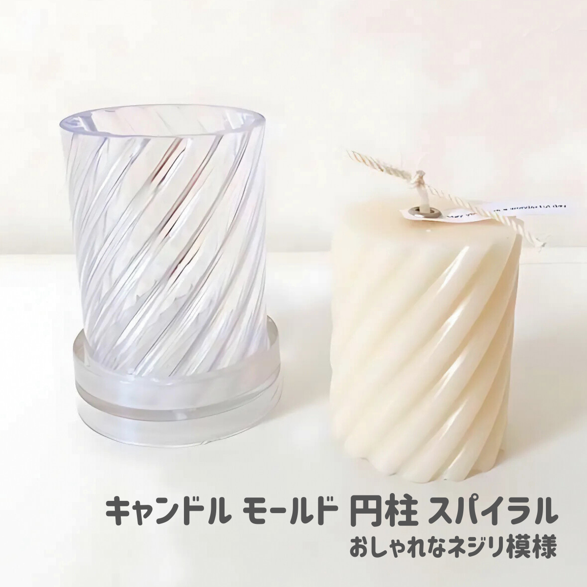 キャンドル モールド 円柱 スパイラル 直径50mm 高さ76mm 韓国キャンドル ソイキャンドル ポリ製 モールド