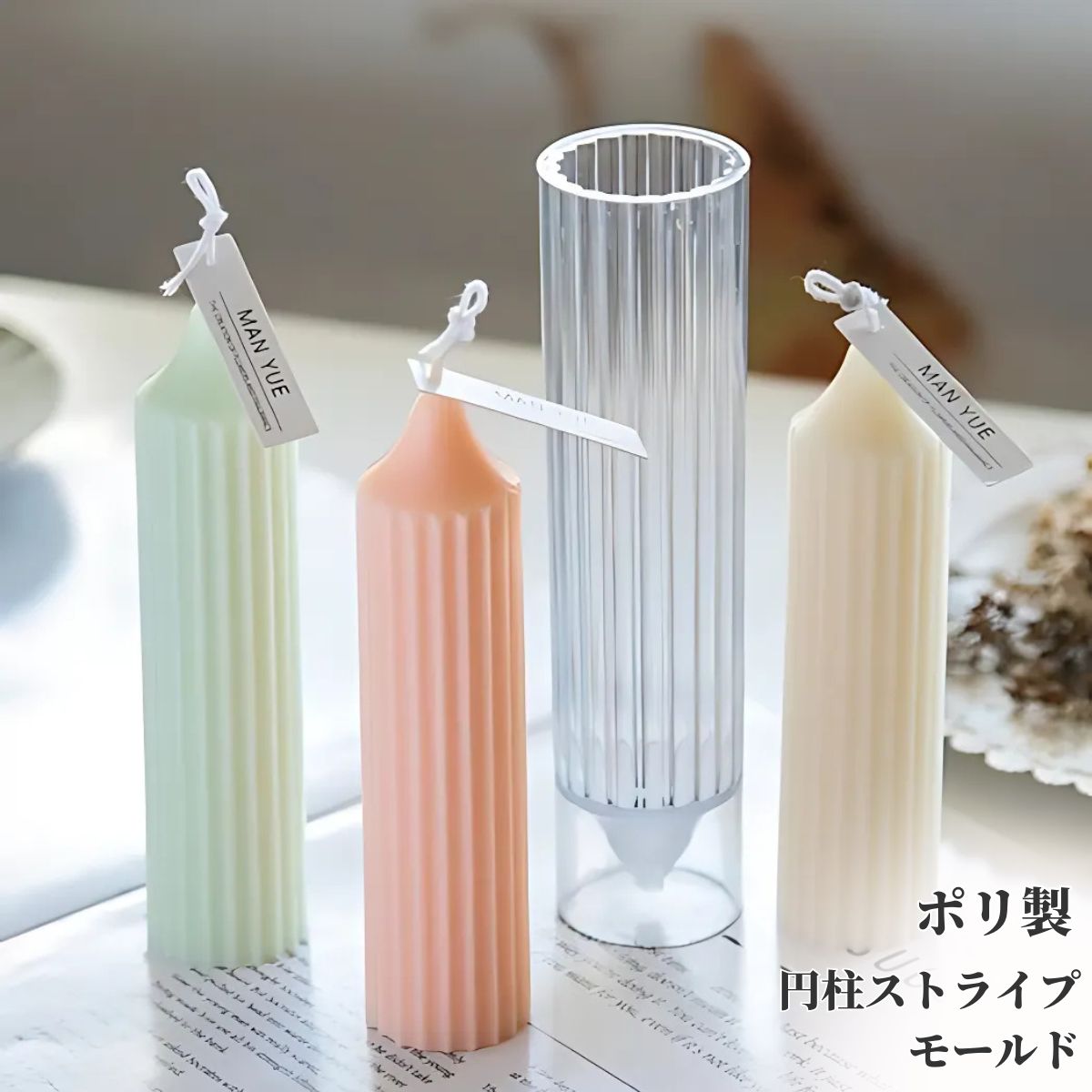 キャンドル モールド 円柱 ストライプ型 韓国キャンドル ソイキャンドル ポリ製 モールド
