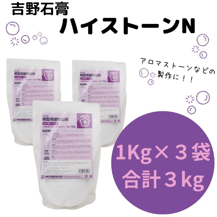 吉野石膏 ハイストーンN 3kg 1kg×3袋 石膏 アロマストーン 小分け 材料 シリコンモールド ハンドメイド