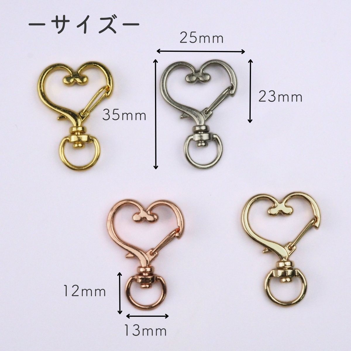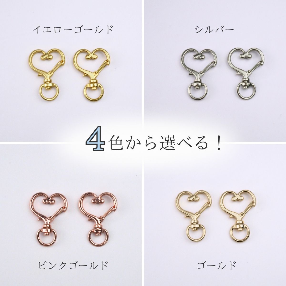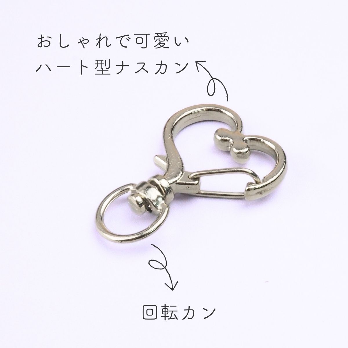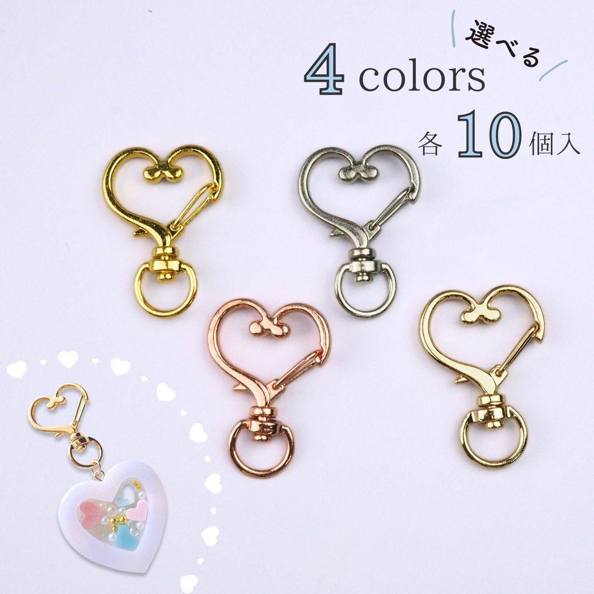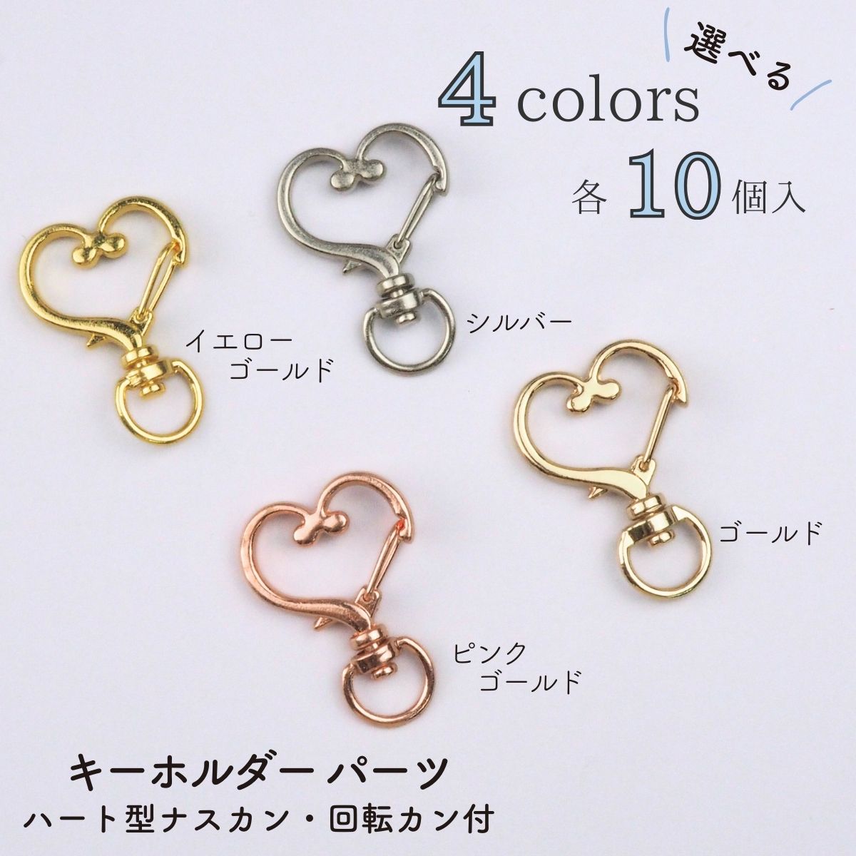 キーホルダー 金具 パーツ ハート型 ナスカン 回転カン アクセサリーパーツ 全4色 10個セット 資材 素材