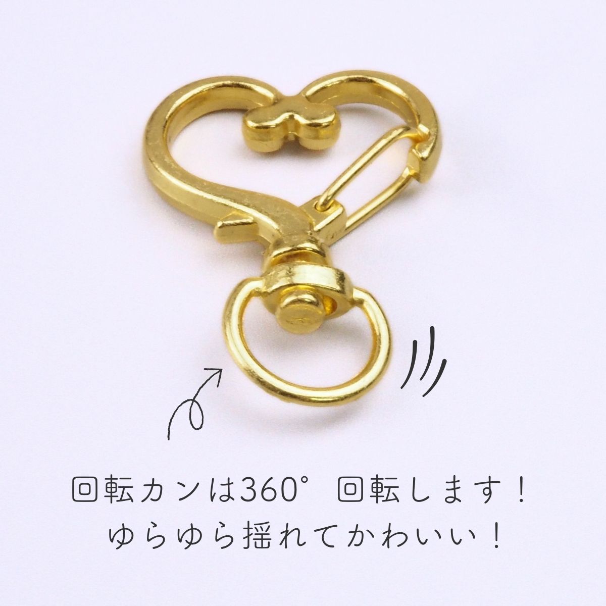 360度回転するので、パーツが絡みづらく、ゆらゆら揺れて可愛く仕上がります。